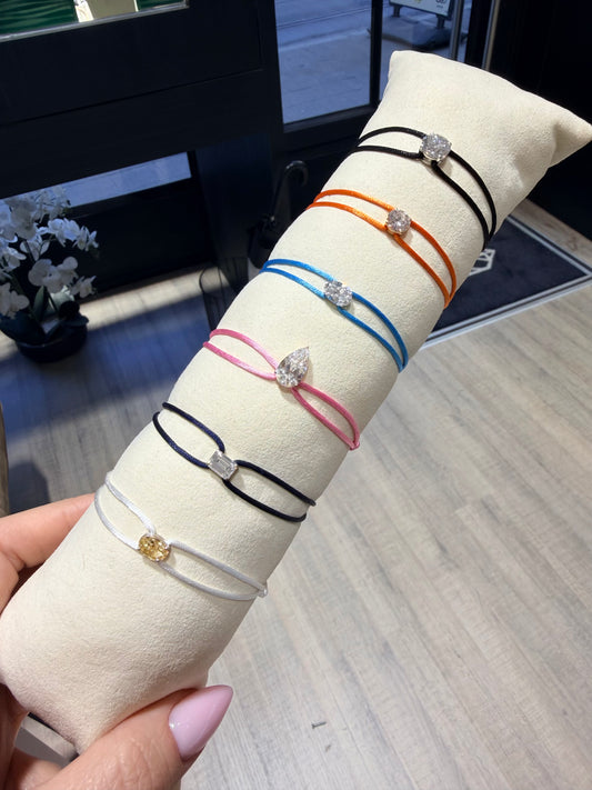A minimal Diamond on a vibrant cord. Easy to wear, easy to stack, impossible to ignore.