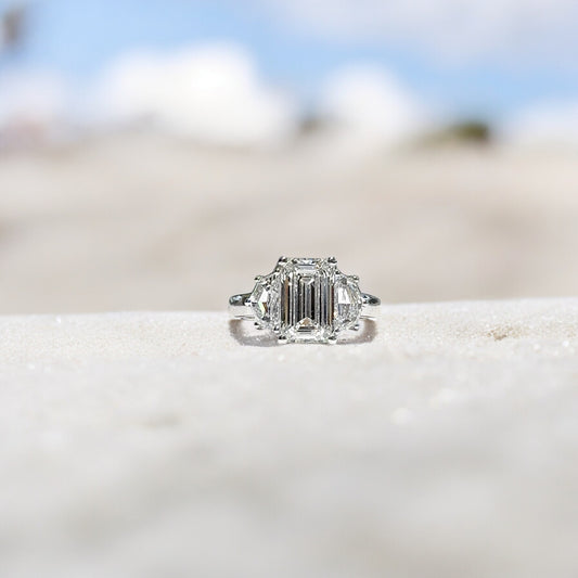 3,03 CT EMERALD SLIJP DRIE STENEN RING